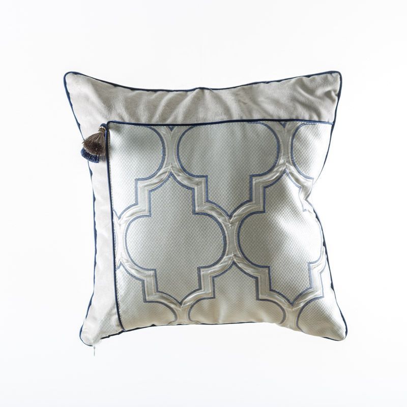 Оригинальная дизайнерская наволочка на подушку 45х45 см. Выполнена из бархата и жаккарда и декорирована кантом и кисточкой. Потайная молния расположена в нижнем шве. Декоративные подушки сделают акцет на цветовой гамме Вашего помещения, подчеркнут особенности интерьерного стиля или тематику оформления. Внимание! Подушка-вкладыш или синтепон приобретаются отдельно.