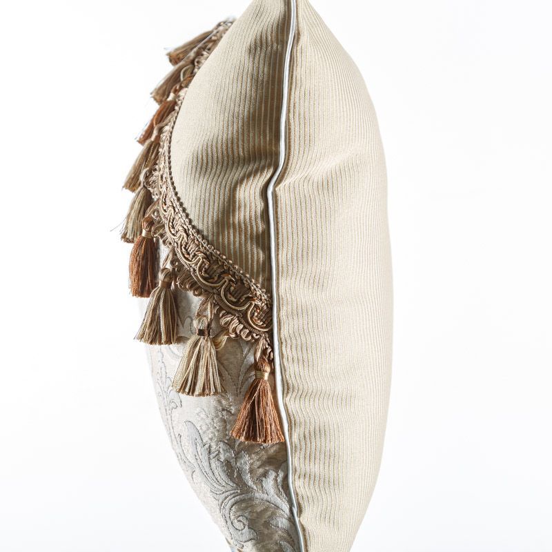 Оригинальная дизайнерская наволочка на подушку 45х45 см. Выполнена из жаккарда и декорирована круглым кантом и бахромой. Потайная молния расположена в нижнем шве. Декоративные подушки сделают акцет на цветовой гамме Вашего помещения, подчеркнут особенности интерьерного стиля или тематику оформления. Внимание! Подушка-вкладыш или синтепон приобретаются отдельно.