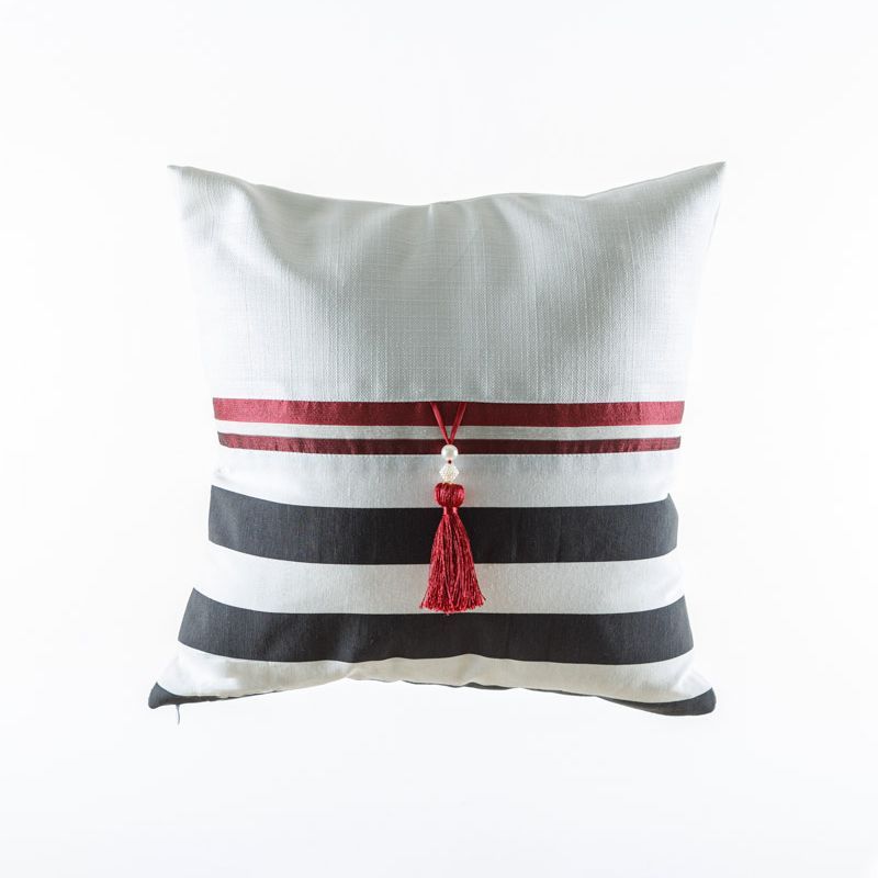 Оригинальная дизайнерская наволочка на подушку 45х45 см. Выполнена изо льна и хлопка и декорирована контрастной тесьмой и кистью. Потайная молния расположена в нижнем шве. Декоративные подушки сделают акцет на цветовой гамме Вашего помещения, подчеркнут особенности интерьерного стиля или тематику оформления. Внимание! Подушка-вкладыш или синтепон приобретаются отдельно.