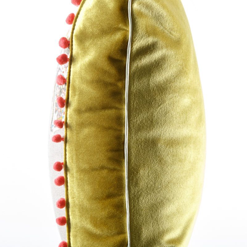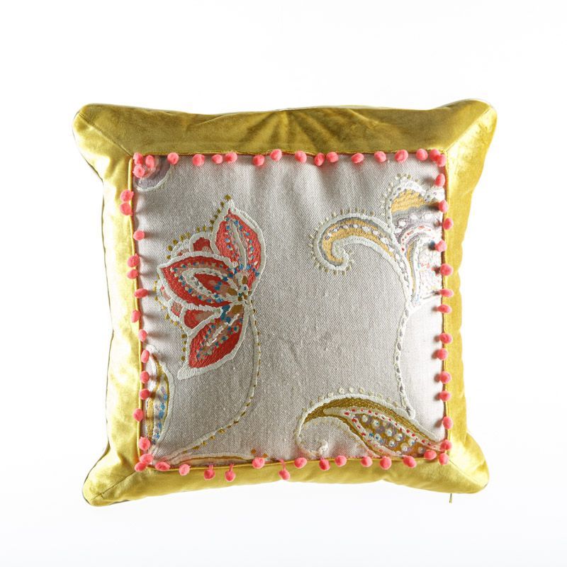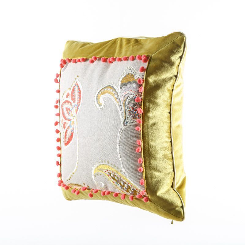 Оригинальная дизайнерская наволочка на подушку 45х45 см. Декорирована круглым кантом и тесьмой с помпонами. Потайная молния расположена в нижнем шве. Декоративные подушки сделают акцет на цветовой гамме Вашего помещения, подчеркнут особенности интерьерного стиля или тематику оформления. Внимание! Подушка-вкладыш или синтепон приобретаются отдельно.