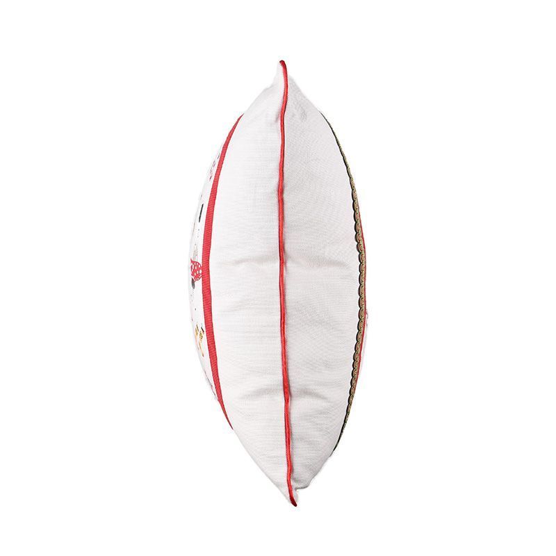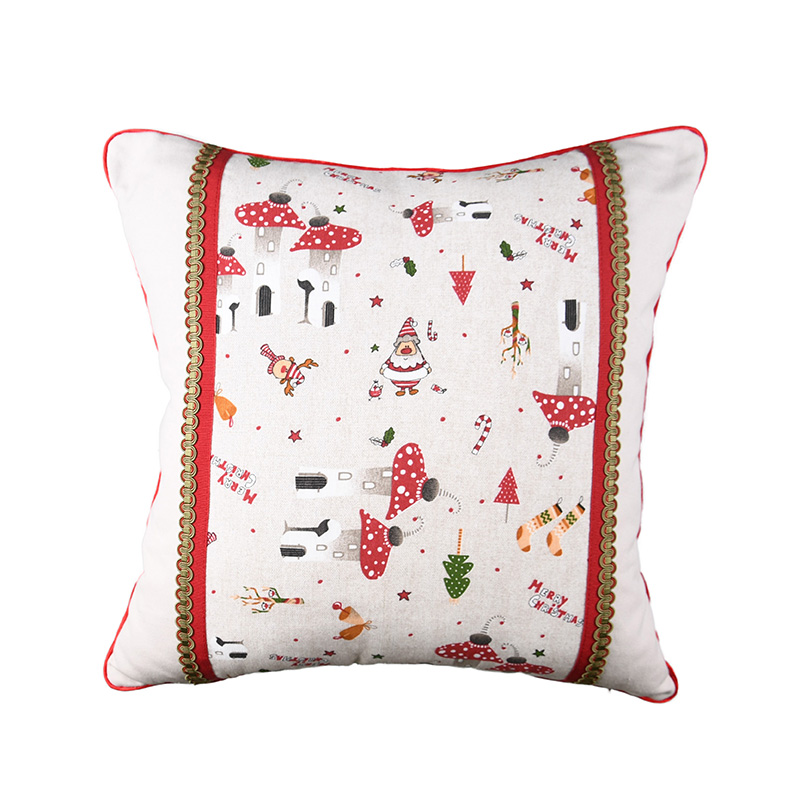 Оригинальная дизайнерская наволочка на подушку 50х50 см выполнена из однотонной ткани в серо-бежевом оттенке, декорирована вставкой с новогодним принтом и контрастной тесьмой. Потайная молния расположена в нижнем шве. Декоративные подушки сделают акцет на цветовой гамме Вашего помещения, подчеркнут особенности интерьерного стиля или тематику оформления. Внимание! Подушка-вкладыш или синтепон приобретаются отдельно.