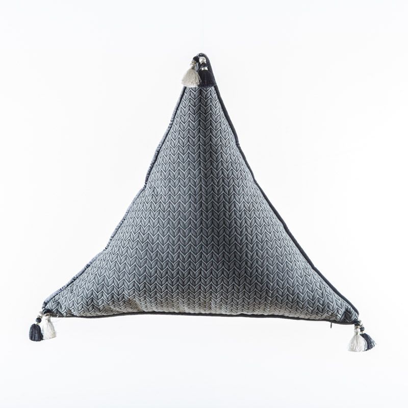Оригинальная треугольная дизайнерская наволочка 50х50х50 см. Выполнена из жаккарда и декорирована кисточками и кантом. Потайная молния расположена в нижнем шве. Декоративные подушки сделают акцет на цветовой гамме Вашего помещения, подчеркнут особенности интерьерного стиля или тематику оформления. Внимание! Подушка-вкладыш или синтепон приобретаются отдельно.