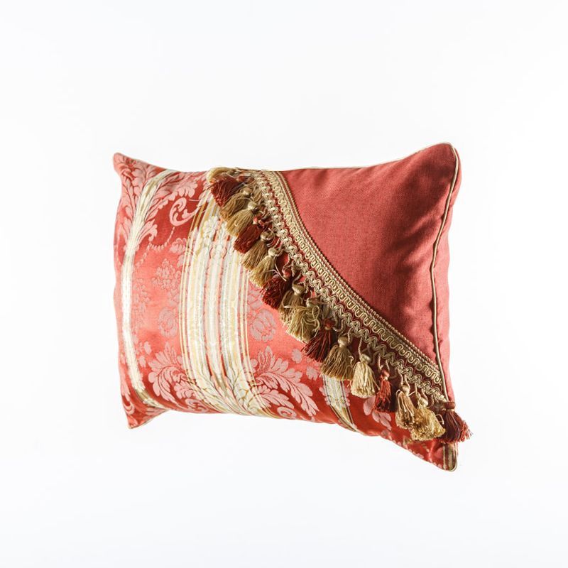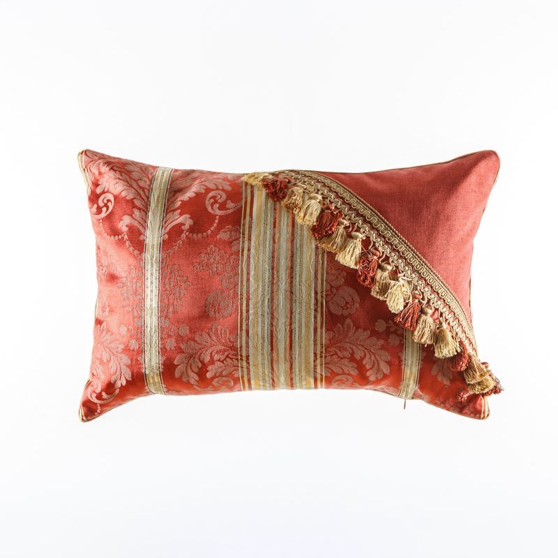 Оригинальная дизайнерская наволочка на подушку 60х40 см. Выполнена из жаккарда и декорирована тесьмой, круглым кантом и бахромой. Потайная молния расположена в нижнем шве. Декоративные подушки сделают акцет на цветовой гамме Вашего помещения, подчеркнут особенности интерьерного стиля или тематику оформления. Внимание! Подушка-вкладыш или синтепон приобретаются отдельно.