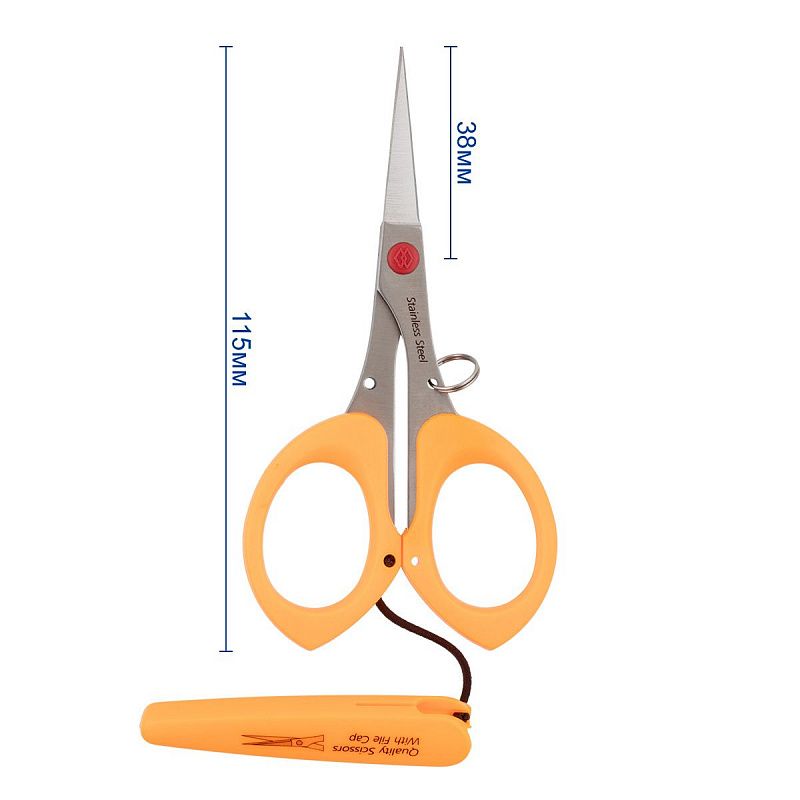 Ножницы с острыми кончиками идеально подойдут для вырезания небольших деталей, аппликаций, обрезки нитей, выполнения надсечек, в пэчворке и при шитье из тонких струящихся тканей. Лезвия сделаны из высококачественной стали 420 и микрозаточкой, которая обеспечивает превосходную резку и точность при вырезании деталей. У ножниц легкие пластиковые ручки и защитный колпачок. На колпачке нанесен декоративный абразив, не предназначен для заточки лезвия у ножниц. Длина лезвия 38 мм. Тип заточки - угловая с микронасечкой.