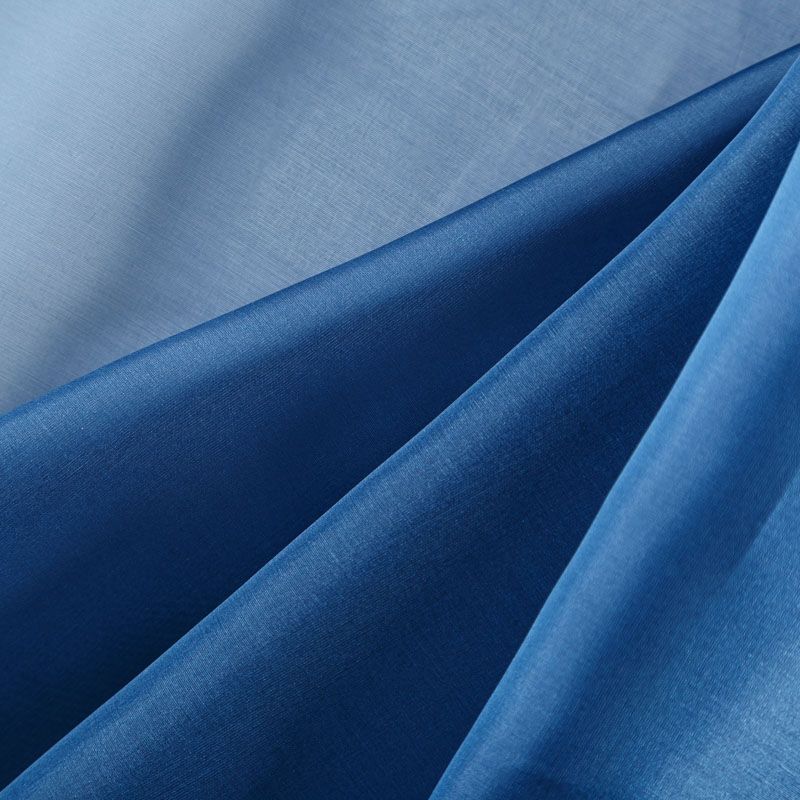 Шелковая невесомая органза с искрящейся поверхностью синего оттенка. Ткань легкая, тонкая, пластичная, хорошо драпируется, просвечивает, отлично держит форму. Подойдет на блузку, платье, тунику или юбку на подкладе.