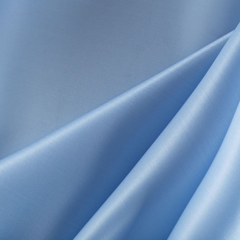 Итальянская шелковая органза с искрящейся матовой поверхностью и слегка атласной изнанкой небесно-голубого оттенка. Ткань легкая, тонкая, пластичная, хорошо драпируется, полупрозрачная, отлично держит форму. Подойдет на блузку, рубашку, платье, тунику или юбку на подкладе.