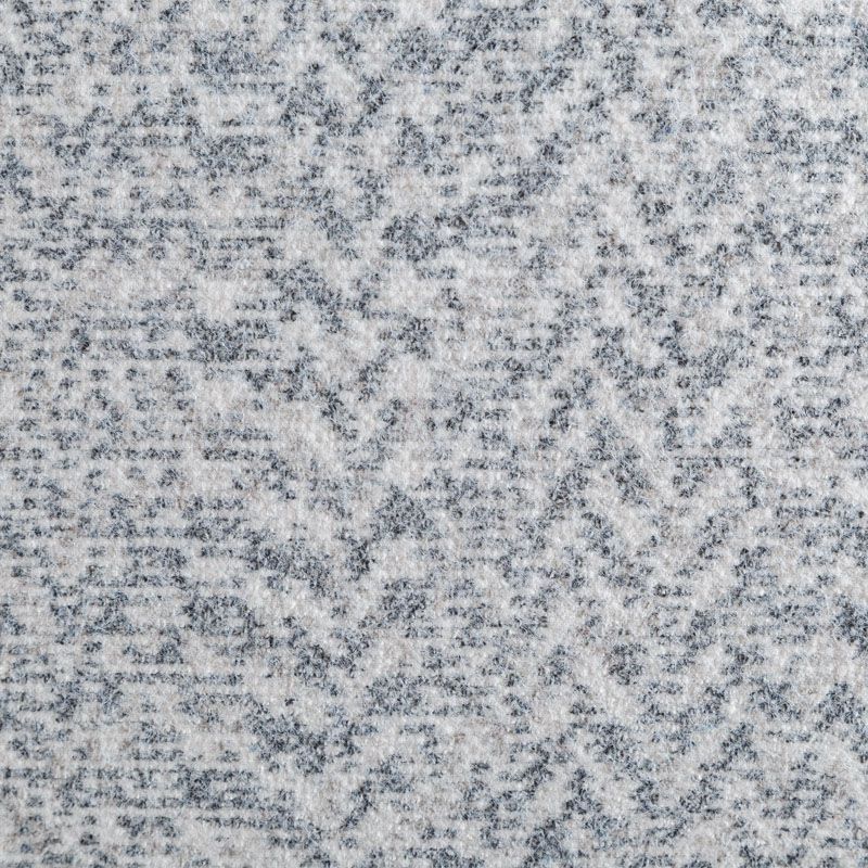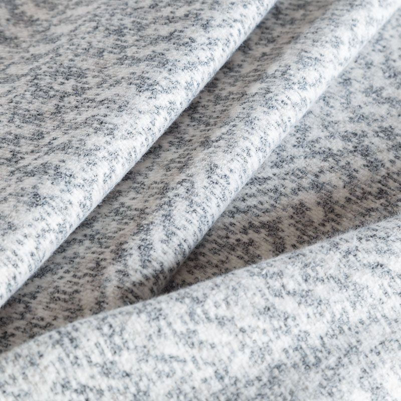 Плотный двухслойный пальтовый трикотаж белого цвета с геометрическим орнаментом серого оттенка. Ткань очень приятная на ощупь, пластичная, теплая и уютная, поверхность мягкая и шелковистая. Изнанка однотонная молочного оттенка. Прекрасно подойдет для  пошива пальто, теплых жакетов, курток, кардиганов, костюмов.