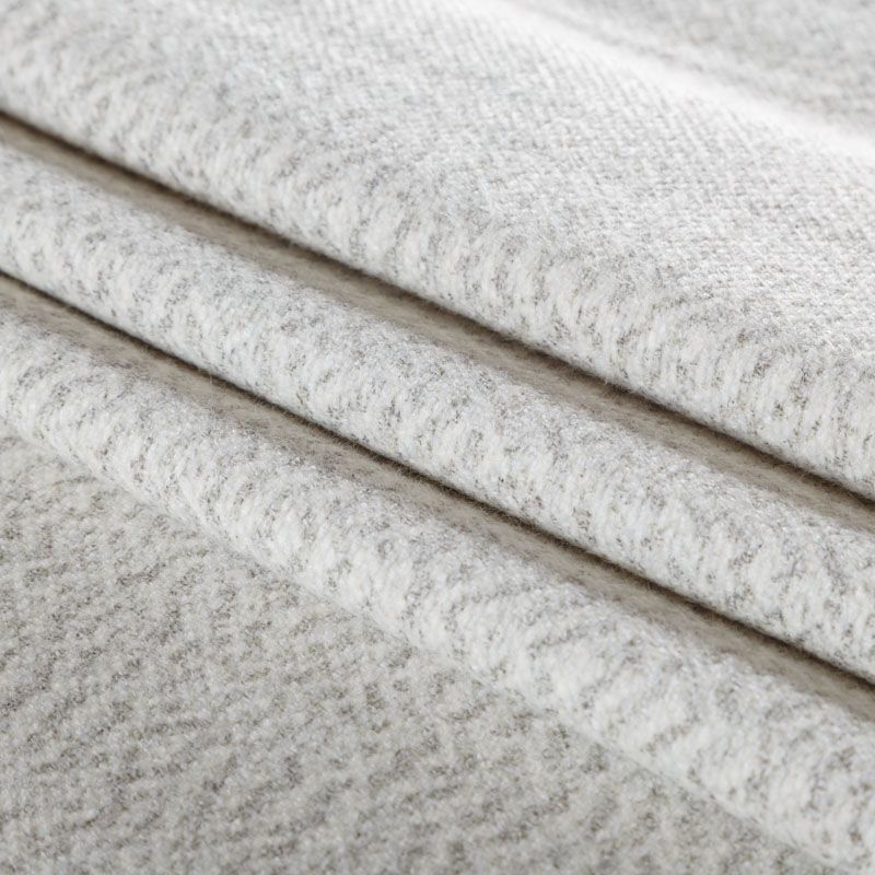 Плотный двухслойный пальтовый трикотаж молочного оттенка с геометрическим орнаментом серого цвета. Ткань очень приятная на ощупь, пластичная, теплая и уютная, поверхность слегка буклированная и мягкая. Изнанка однотонная молочного оттенка. Прекрасно подойдет для  пошива пальто, теплых жакетов, курток, кардиганов, костюмов.