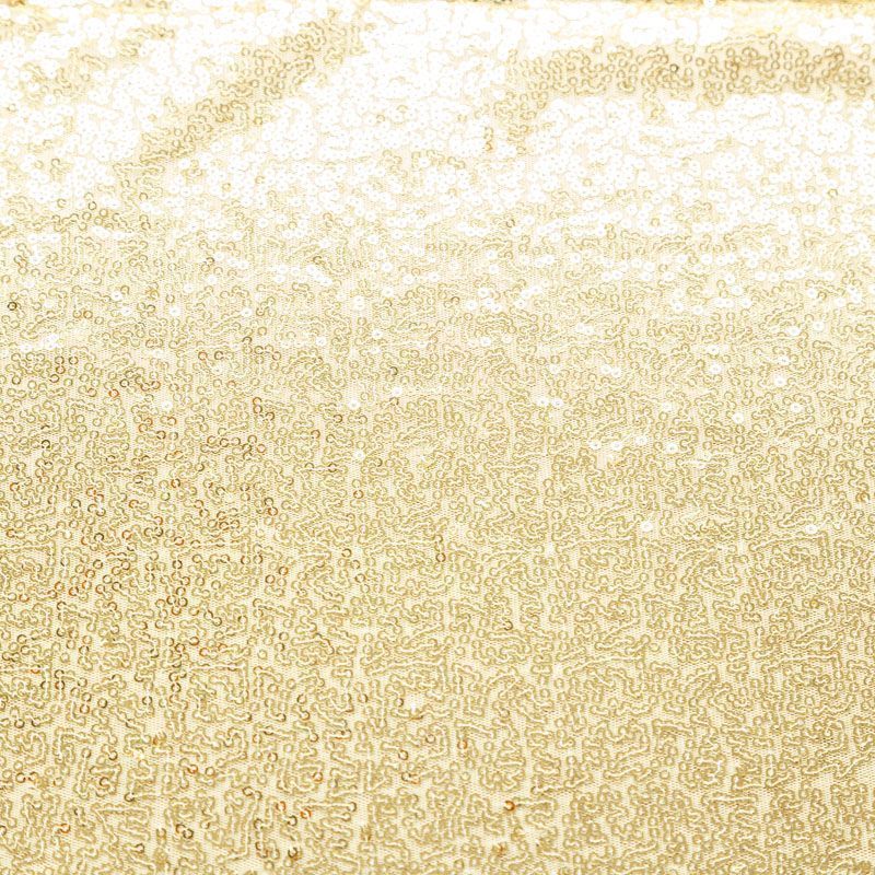 Блестящие пайетки в золотистом оттенке. Мелкие, размером около 3 мм, расположены в хаотичном порядке. Основа - мягкая и эластичная сетка.  Ткань полупрозрачная, может потребоваться подклад. Подойдет для вечернего, коктейльного платья, юбки, нарядных детских изделий, танцевальных и сценических костюмов.