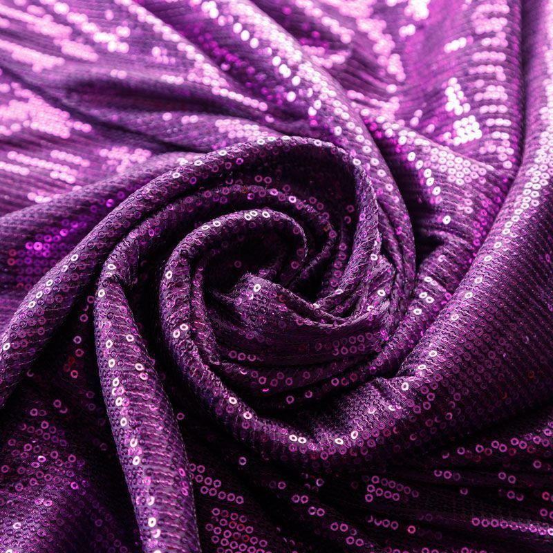 Блестящие пайетки в пурпурном оттенке. Мелкие, размером около 3 мм, расположены в хаотичном порядке. Основа - мягкая и эластичная сетка.  Ткань полупрозрачная, может потребоваться подклад. Подойдет для вечернего, коктейльного платья, юбки, нарядных детских изделий, танцевальных и сценических костюмов.