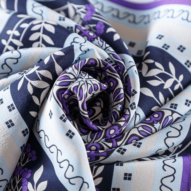 Платок выполнен из шелкового крепдешина с расттительно-абстрактным орнаментом. Невесомый, воздушный, мягкий и пластичный, летящий, поверхность матовая, фактурная. Будет отличным стильным аксессуаром к платью, костюму, жакету или пальто.
