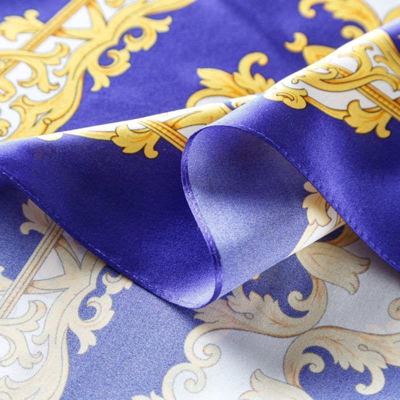Платок шелковый 67х67 см 510753 фиолетово-синий принтованный