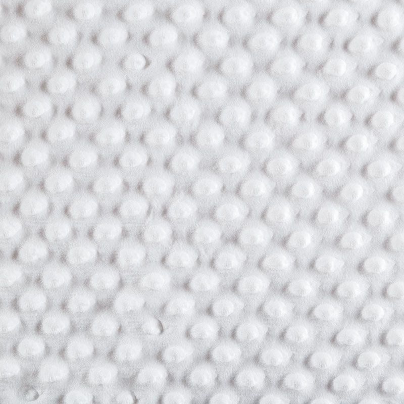 Мягкое, нежное, приятное на ощупь, с гладкой текстурой, красивым блестящим эффектом. Фактура – пузырьки. На лицевой стороне мягкий ворс 1 мм. Изнаночная сторона  — гладкое  трикотажное полотно без ворса. Используется  для пошива покрывал, пледов, одеял, бортиков в кроватку, конвертов для новорождённых, мягких игрушек, комбинезонов, пижам, домашней одежды, лежанок для домашних питомцев.