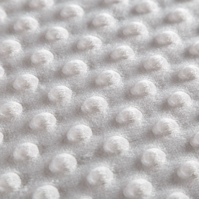 Мягкое, нежное, приятное на ощупь, с гладкой текстурой, красивым блестящим эффектом. Фактура – пузырьки. На лицевой стороне мягкий ворс 1 мм. Изнаночная сторона — гладкое трикотажное полотно без ворса. Используется для пошива покрывал, пледов, одеял, бортиков в кроватку, конвертов для новорождённых, мягких игрушек, комбинезонов, пижам, домашней одежды, лежанок для домашних питомцев.