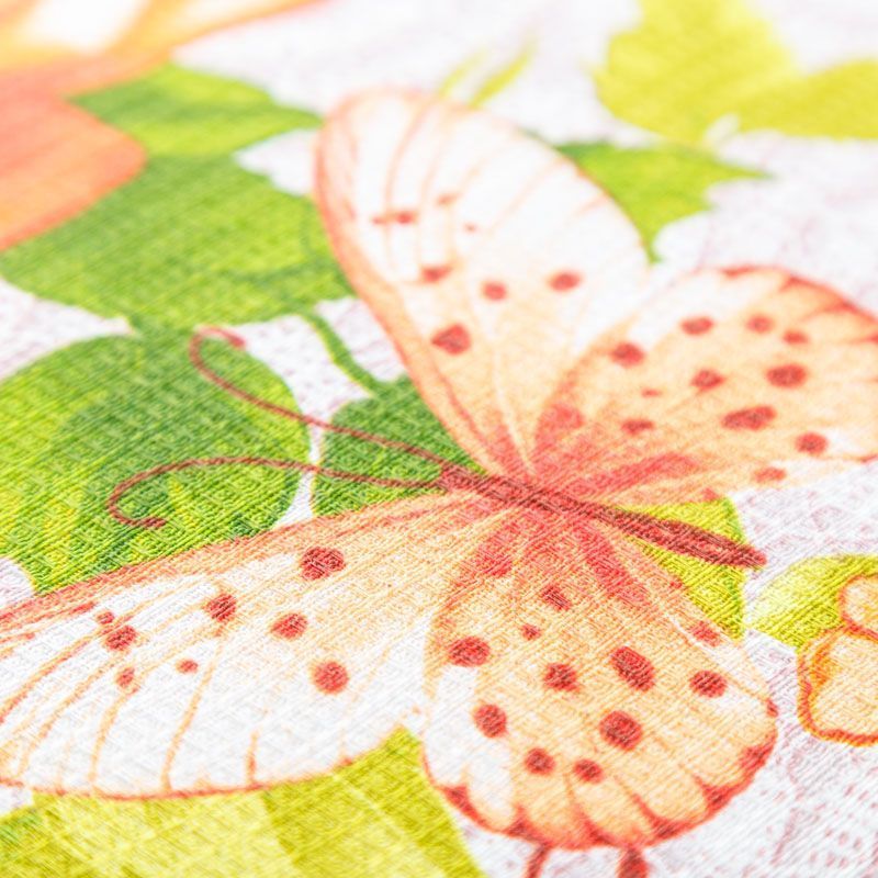 Качественная натуральная хлопчатобумажная ткань, обладающая высокой гигроскопичностью, с ярким цветочным принтом. Универсальный материал, из которого шьют кухонные полотенца, скатерти, прихватки, салфетки.