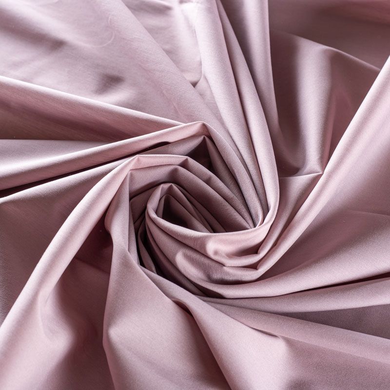 Однотонный плательно-рубашечный хлопковый поплин розовато-лилового оттенка. Ткань лёгкая, слегка прозрачная, поверхность матовая, гладкая, приятная к телу, хорошо драпируется, тянется за счет эластана в составе. Прекрасно подойдет блузы, платья-рубашки, летнего сарафана, туники.