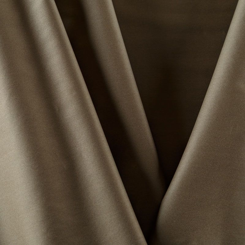 Однотонный плательно-рубашечный смесовый поплин в оттенке хаки. Ткань лёгкая, слегка прозрачная, поверхность матовая, гладкая, приятная к телу, хорошо драпируется, тянется за счет эластана в составе. Прекрасно подойдет блузы, платья-рубашки, летнего сарафана, туники.