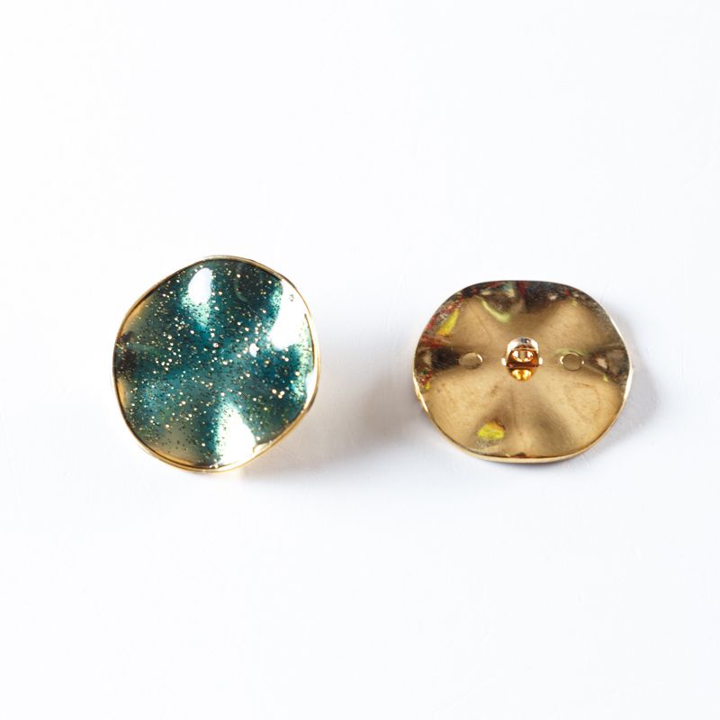 Пуговица на ножке 30 мм металл 493735 золото/зеленый