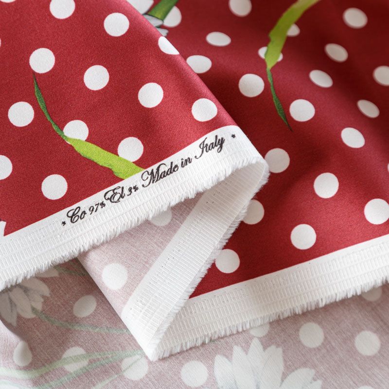 Сатин-коттон стрейч 063-06698 вишневый принтованный