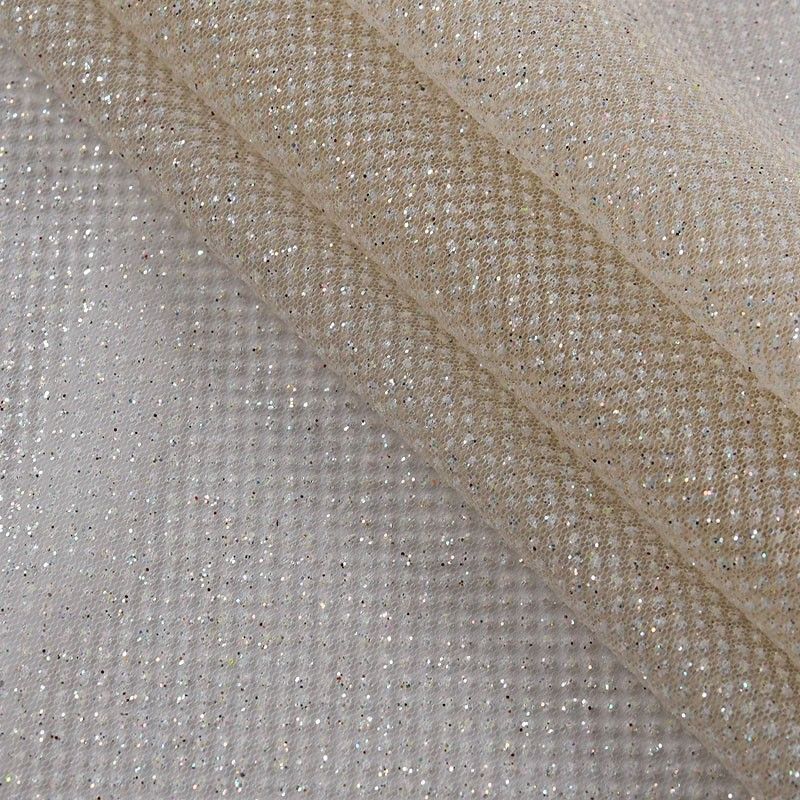 Рельефный прозрачный материал с сетчатой структурой. Поверхность полотна с металлизорованным глиттером, который придает материалу блеск и мерцание. Полотно жесткое, не тянется, отлично держит форму. Сетки нашли свое применение в процессе пошива и последующего декора вечерних нарядов, свадебных платьев, спортивной одежды, театральных костюмов.