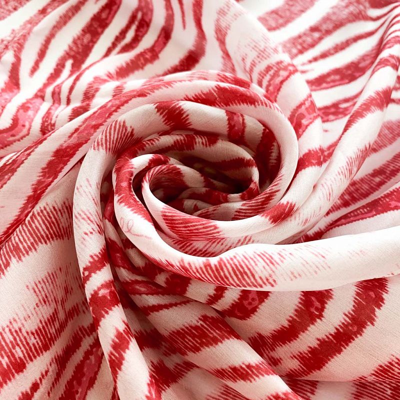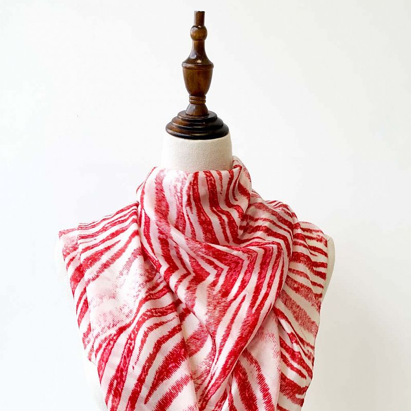 Изящный, нежный и необыкновенный шарф из итальянского шелкового шифона с анималистичным красно-молочным принтом "зебра". Невесомый, воздушный, мягкий и пластичный, летящий, поверхность с красивым матовым блеском. Сделает образ романтичным, будет отличным стильным аксессуаром к летнему платью, костюму, пальто.