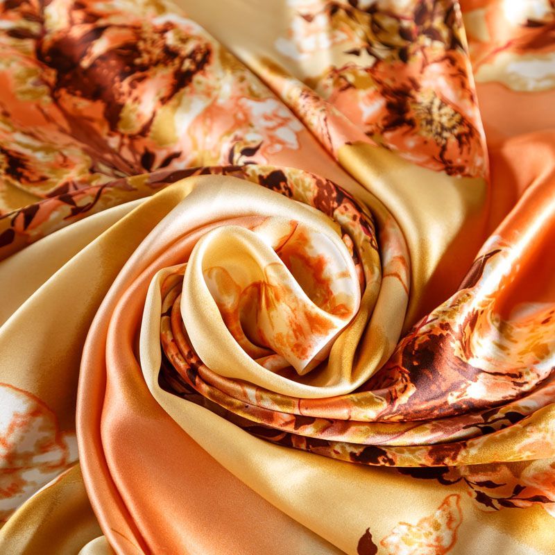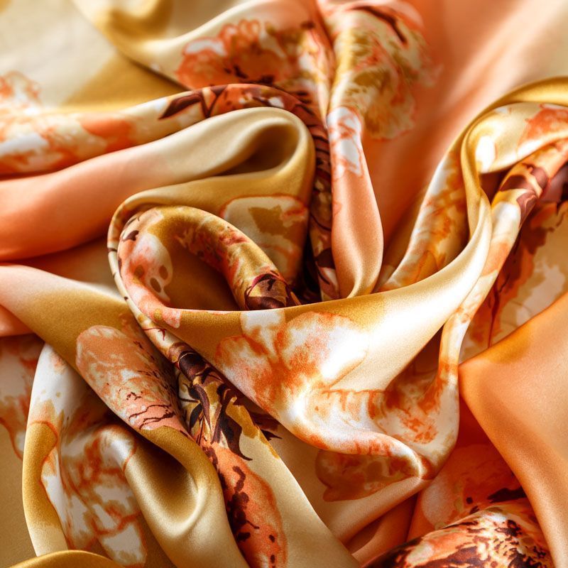 Шелк натуральный К01-047 кораллово-карамельный принтованный в Вологде