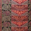Итальянский атласный шелк с богатым орнаментом в красно-коралловых оттенках.  Ткань тонкая, не просвечивает, отлично драпируется, легкая и струящаяся, тянется за счет эластана в составе. Идеально подойдет для пошива платьев и сарафанов расклешенных моделей, с воланами, летящих юбок, топов, блузки, костюма в пижамном стиле.