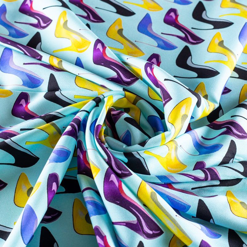 Натуральный итальянский шелк с матовой поверхностью и атласной изнанкой, легкий, струящийся, хорошо драпируется. Модный принт выполнен в ярких оттенках, который будет уместен для пошива летнего сарафана, платья, блузки, костюма в пижамном стиле, широких брюк или юбки.