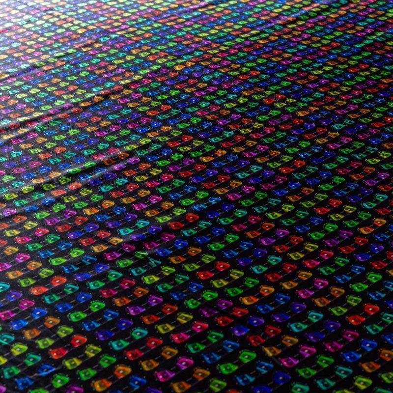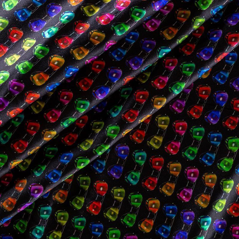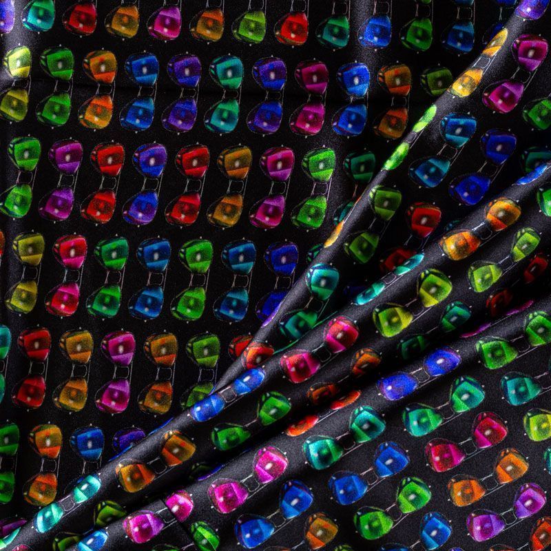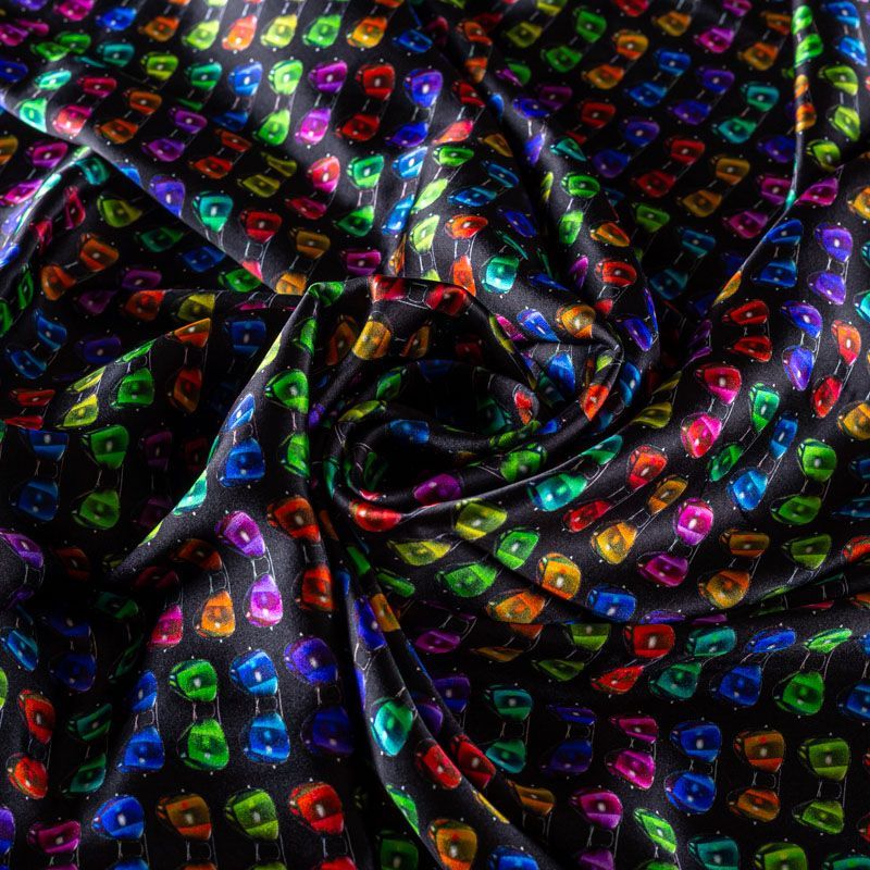 Натуральный шелк с атласной поверхностью, легкий, струящийся, хорошо драпируется, тянется за счет эластана в составе. Модный принт выполнен в ярких оттенках, который будет уместен для пошива летнего сарафана, платья, блузки, костюма в пижамном стиле, широких брюк или юбки.