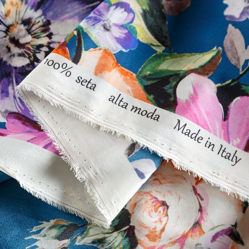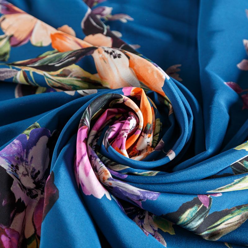 Шелк натуральный К15-004 синий принтованный в Вологде