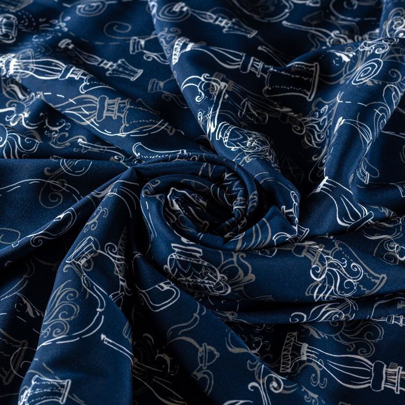 Шелк натуральный К15-318 темно-синий принтованный в Вологде