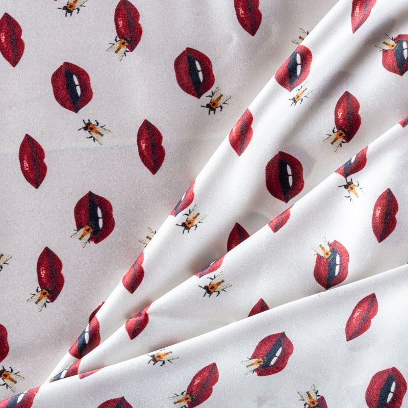 Натуральный шелк с атласной поверхностью, легкий, струящийся, хорошо драпируется, тянется за счет эластана в составе. Модный принт выполнен в ярких оттенках, который будет уместен для пошива летнего сарафана, платья, блузки, костюма в пижамном стиле, широких брюк или юбки.
