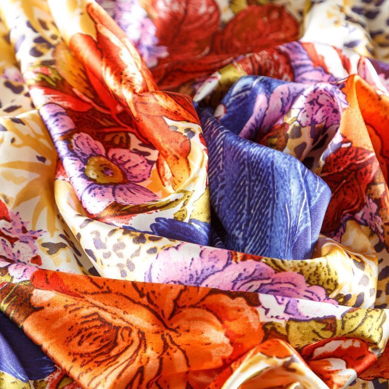 Шелк натуральный К27-0036 сливочный принтованный в Вологде