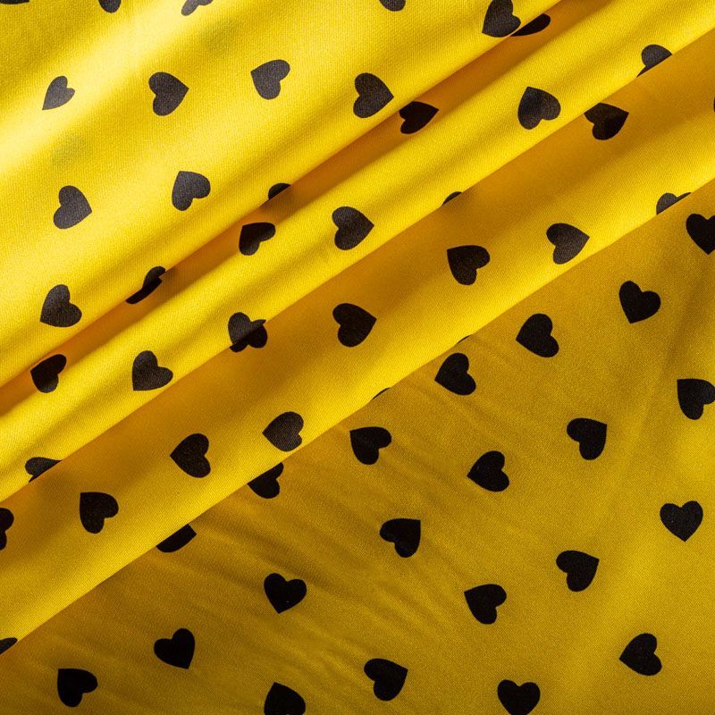 Итальянский креповый шелк с романтическим принтом на солнечном желтом фоне. Ткань тонкая, не просвечивает, отлично драпируется, легкая и струящаяся. Идеально подойдет для пошива платьев и сарафанов расклешенных моделей, с воланами, летящих юбок, топов, блузки, костюма в пижамном стиле.