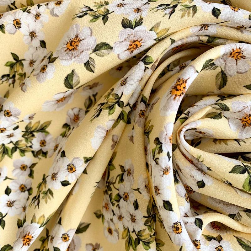 Тонкая, но не прозрачная ткань, мягкая, отлично драпируется, легкая и струящаяся с креповой матовой поверхностью. Идеально подойдет для пошива платьев и сарафанов расклешенных моделей, с воланами, летящих юбок, топов, блузы, костюма в пижамном стиле.