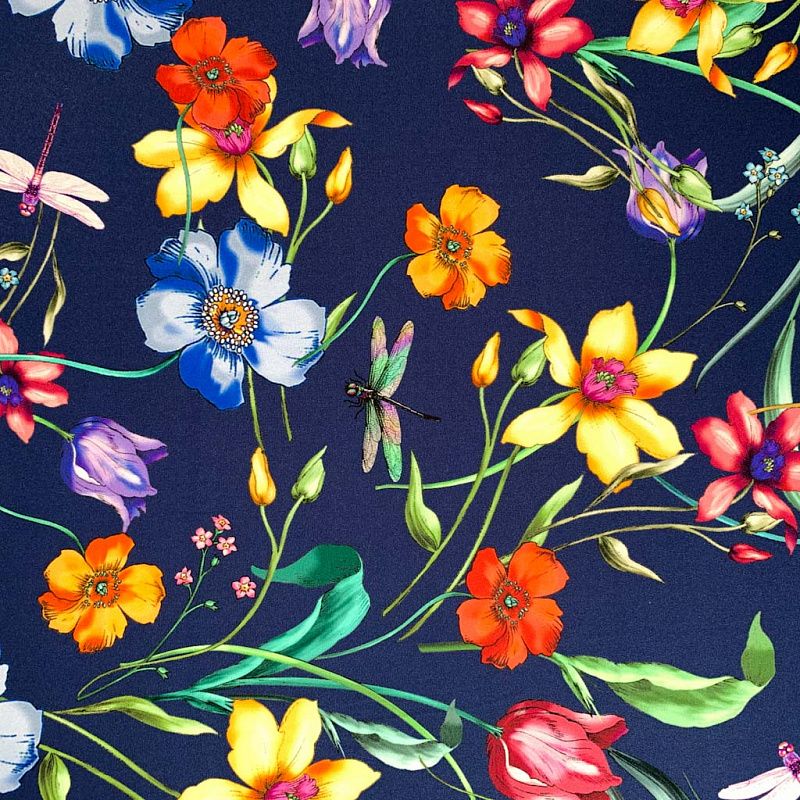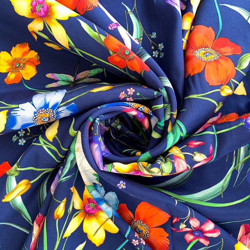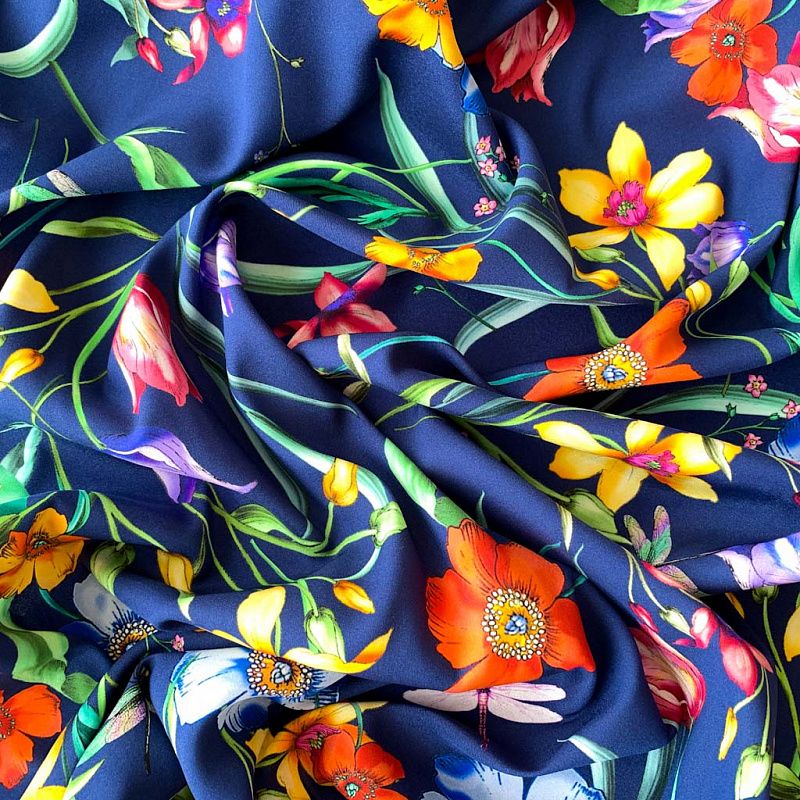 Шелк натуральный К32-155 темно-синий принтованный в Вологде