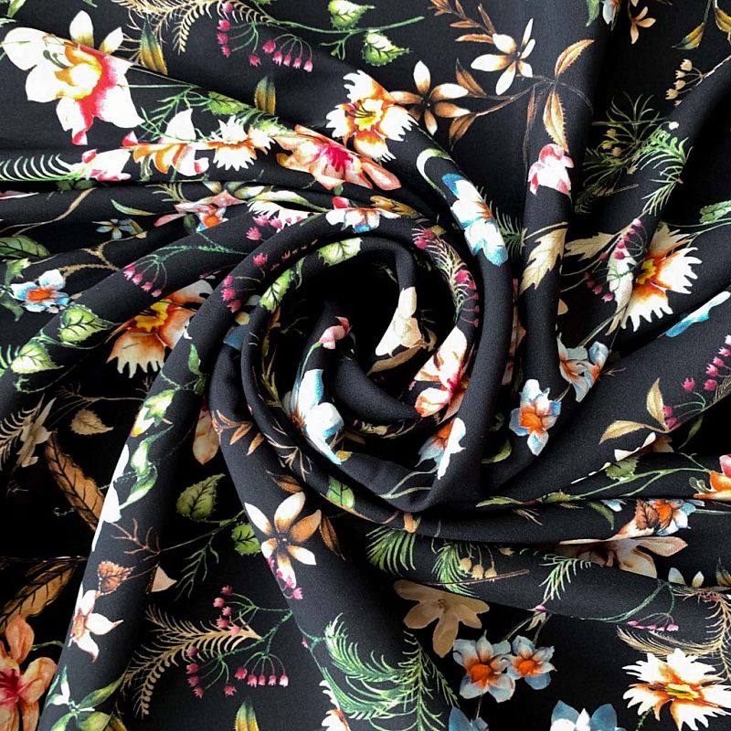 Шелк натуральный К32-158 черный принтованный в Вологде