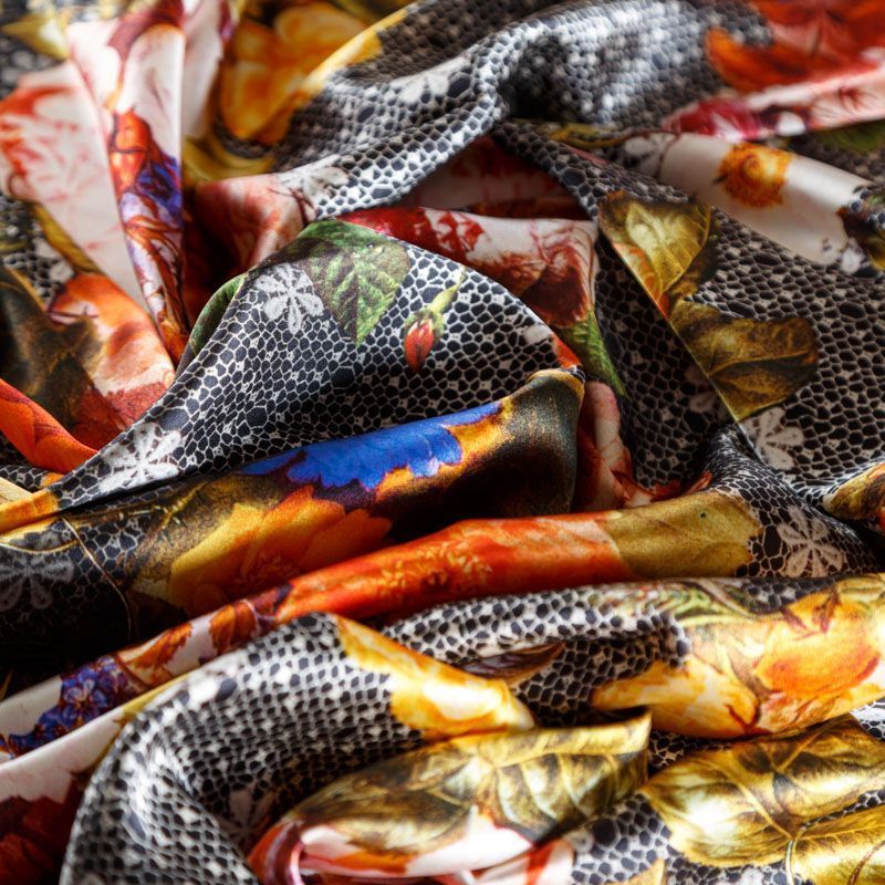 Шелк натуральный К9-185 черный принтованный