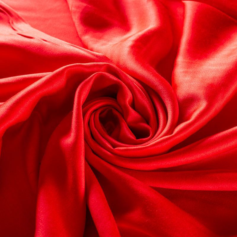 Плательно-блузочный штапель с добавлением шелка красного оттенка. Мягкий, нежный, пластичный, шелковистый на ощупь, хорошо драпируется, практичный. Особенно актуален летом, он очень легкий, обволакивающий прохладой. Идеален для пошива летней детской одежды, сарафанов, платьев, юбок, блузок, домашней одежды: халатов, ночной пижамы.