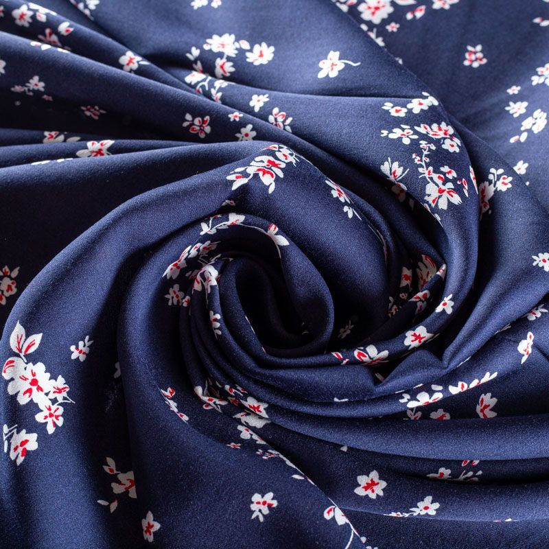 Плательно-блузочный штапель с добавлением шелка с мелким цветочным принтом. Ткань очень мягкая, нежная, пластичная, шелковистая на ощупь, хорошо драпируется, практичная. Особенно актуальна летом, шелк-штапель очень легкий, обволакивающий прохладой. Идеален для пошива летней детской одежды, сарафанов, платьев, юбок, блузок, домашней одежды: халатов, ночной пижамы.