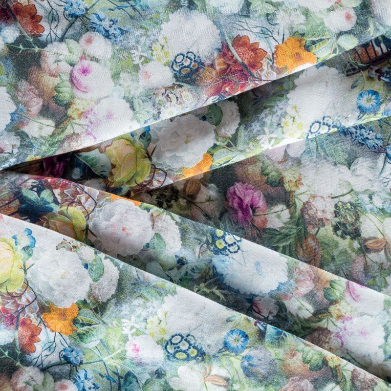 Плательно-блузочный штапель с добавлением шелка с акварельным цветочным принтом. Ткань очень мягкая, нежная, пластичная, шелковистая на ощупь, хорошо драпируется, практичная. Особенно актуальна летом, шелк-штапель очень легкий, обволакивающий прохладой. Идеален для пошива летней детской одежды, сарафанов, платьев, юбок, блузок, домашней одежды: халатов, ночной пижамы.