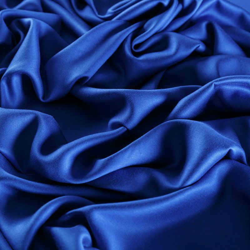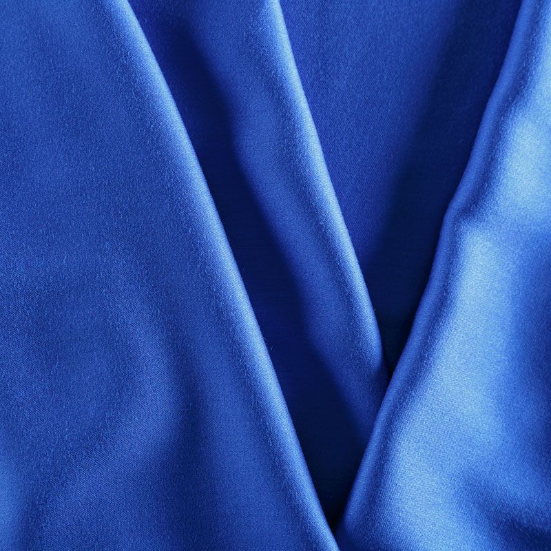 Плательно-блузочный штапель с добавлением шелка в ярком синем оттенке. Мягкий, нежный, пластичный, шелковистый на ощупь, хорошо драпируется, практичный, тянется за счет эластана в составе. Особенно актуален летом, он очень легкий, обволакивающий прохладой. Идеален для пошива летней детской одежды, сарафанов, платьев, юбок, блузок, домашней одежды: халатов, ночной пижамы.