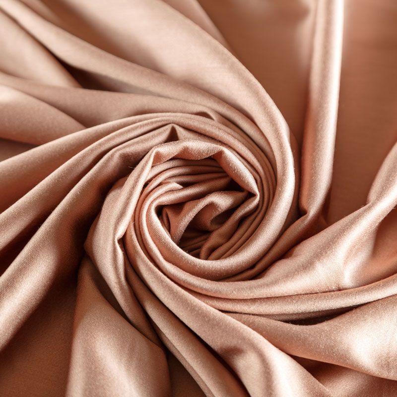 Плательно-блузочный штапель с добавлением шелка в пудровом оттенке. Мягкий, нежный, пластичный, шелковистый на ощупь, хорошо драпируется, практичный, тянется за счет эластана в составе. Особенно актуален летом, он очень легкий, обволакивающий прохладой. Идеален для пошива летней детской одежды, сарафанов, платьев, юбок, блузок, домашней одежды: халатов, ночной пижамы.