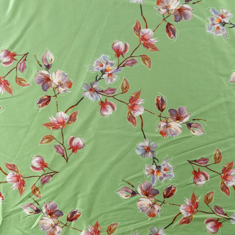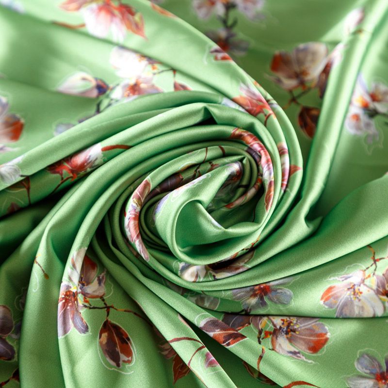 Шелк синтетический К33-044 зеленое яблоко принтованный