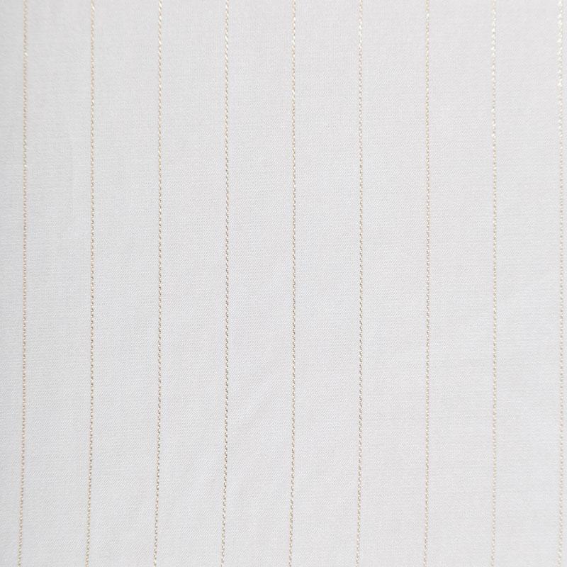 Тонкая, легкая, струящаяся ткань, декорированная тонкими вертикальными полосками люресовой нити, не просвечивает, очень нежная и прятная к телу, обладает благородным атласным блеском, хорошо драпируется, тянется за счет эластана в составе. Идеально подойдет для пошива блузок, платьев и юбок, а также топов, платков, домашней одежды.