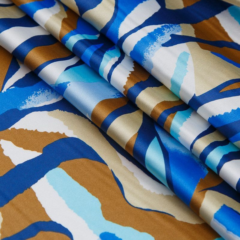 Шелк синтетический стрейч 065-17539 сине-голубой принтованный в Вологде