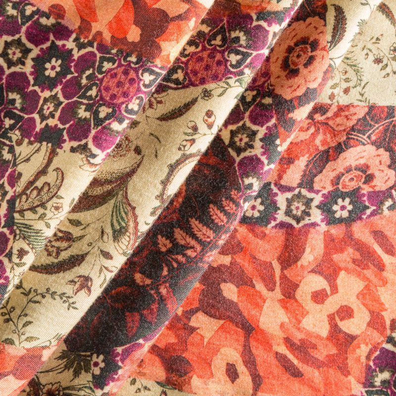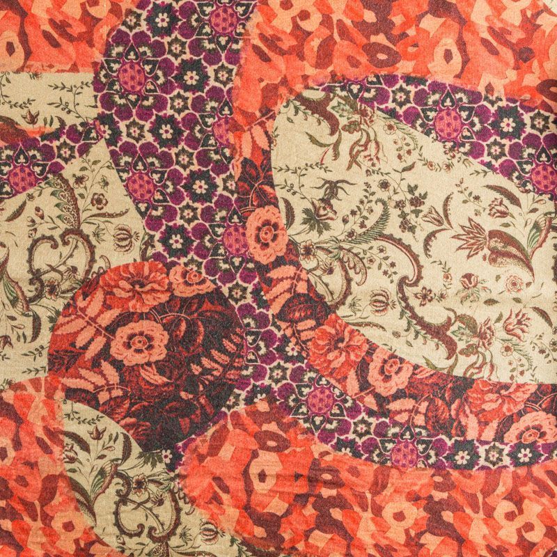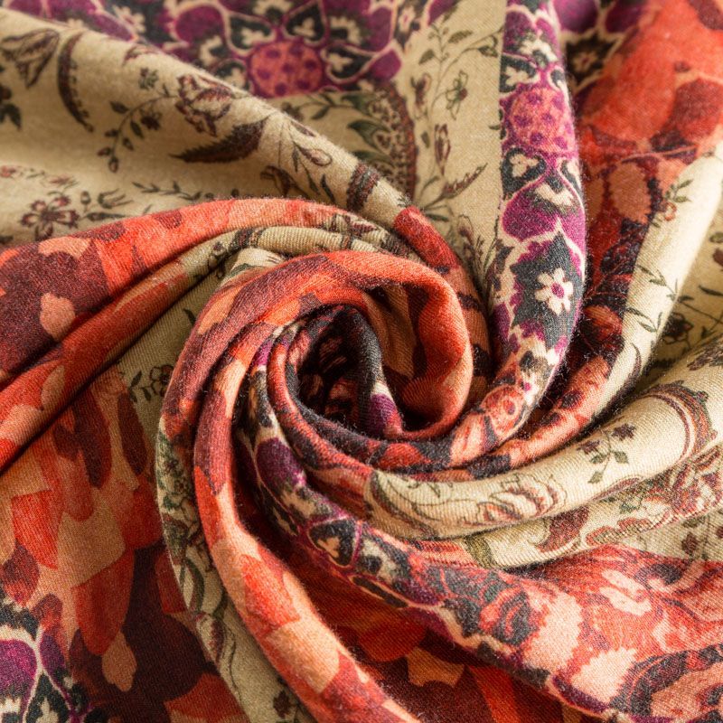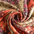 Итальянская плательная шерсть теплого бежевого оттенка с цветочно-абстрактным принтом. Ткань тонкая, мягкая и пластичная, отлично драпируется, тянется за счет эластана в составе. Поверхность матовая с твиловым плетением нитей. Прекрасно подойдет для создания осенних платьев, теплых туник, юбок, кофточек, а также аксессуаров, таких как палантины, шарфы, платки.