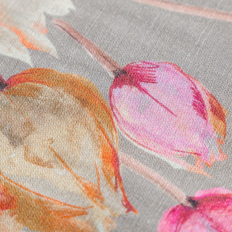 Итальянская плательная шерсть серо-стального оттенка с акварельными бутонами тюльпанов смотрится благородно и аристократично. Ткань очень пластичная, имеет в составе шелк, не просвечивает, мягко драпируется, а также практически не мнется. Прекрасно подойдет для платья, юбки, легкого жакета и даже брючных изделий на прохладный весенне-осенний сезон.