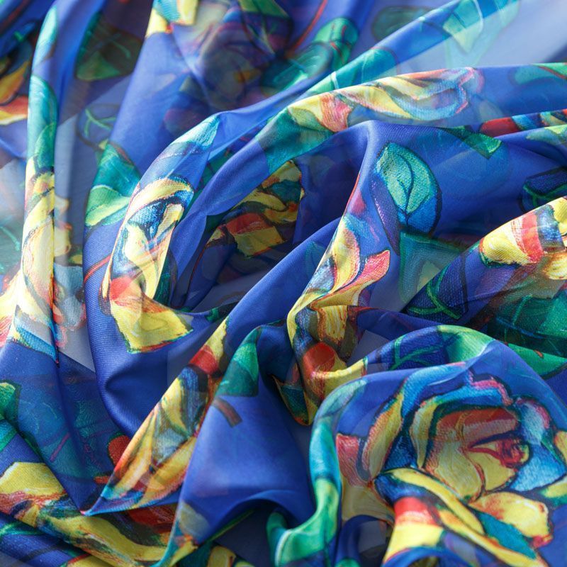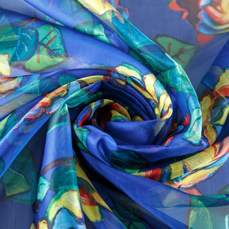 Шифон 068-08045 васильковый принтованный в Вологде