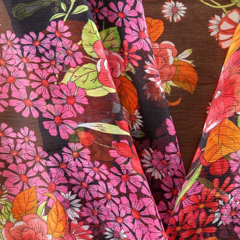 Шифон натуральный К02-425 черный принтованный в Вологде